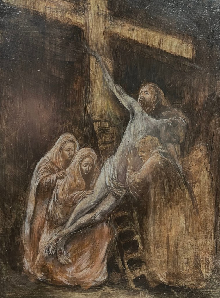 And what else did I expect? That the way of the Cross would be pretty? I’m afraid to admit that I really thought I could make it that way; that I could make something humanly pleasing out of this subject matter. But I couldn’t. Or at least, I didn’t. It appears that this arduous time of maturation, the necessary trials of this vocation, have made my Stations exactly as they should be; exactly as they have to be. I can do nothing else.