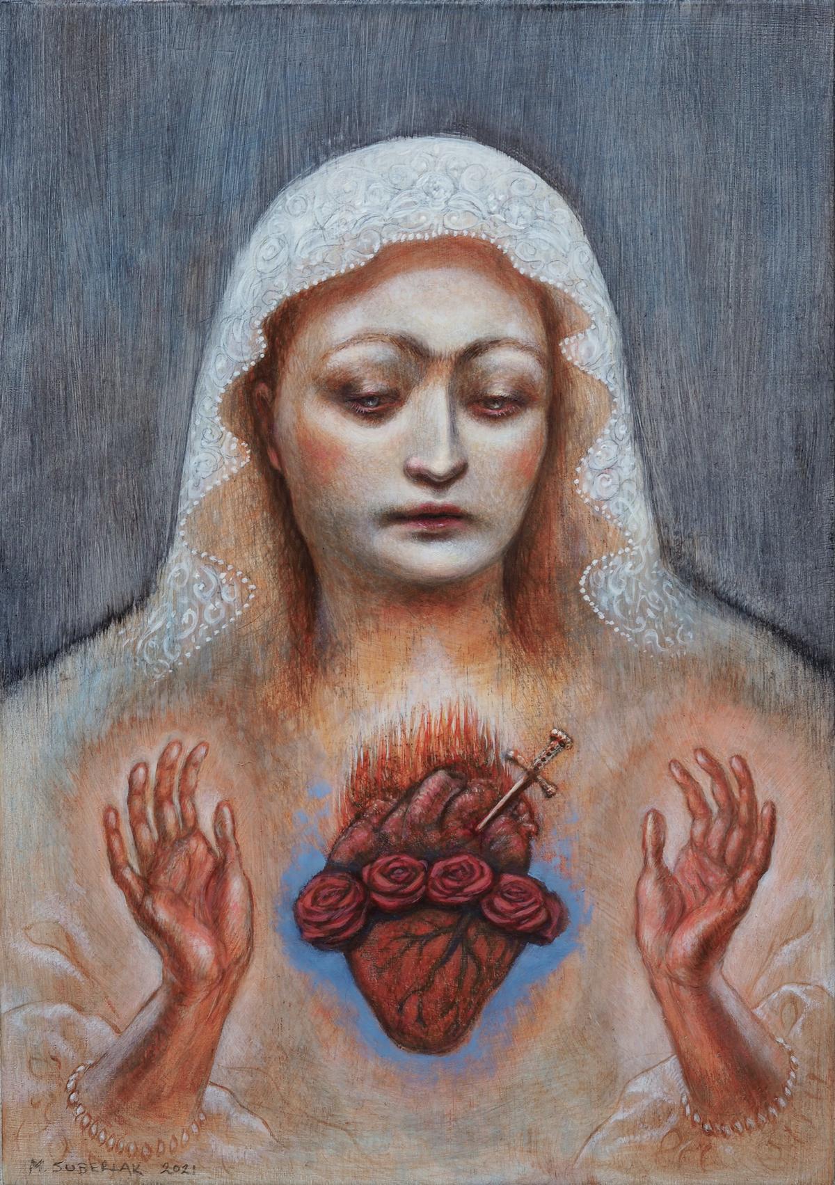 “My Immaculate Heart,” oil on wood, 5x7in, 2021.“Ecce Homo (Behold The Man),” oil on wood panel, 4x4in, 2015.“The Madonna of Humility,” oil on wood panel, 36x48in, 2014. “Detail of Christ Child, Madonna of Humility”“Detail of Holy Feet, Madonna of Humility”“Detail of Angel, Madonna of Humility”“St. Mary Magdalene in Ecstasy,” oil on wood panel, 24x24in, 2012-present (in progress). “Birnbaum Nativity,” oil on wood panel, 9×12, 2015.“Madonna of the Garden,” oil on wood panel, 6x8in, 2013. “Virgo Davidica, Mater Universi,” oil on wood panel, 5x7in, 2012.“The Holy Family (Inspired by Picasso’s ‘The Lovers),” oil on wood panel, 6x8in, 2013.“Our Lady of the Puget Sound,” oil on wood panel, 5x7in, 2010.